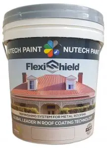 Nutech FlexiShield Roof Coating Matt 15Ltr Superior Coating for Metal Surfaces Flexi-Shield is an innovative, nanotechnology modified acrylic polymer coating formulated specifically as a refinishing system for weathered and old coated metal roofing, guttering, metal fencing and metal façade cladding. The unique nanotec…Read more