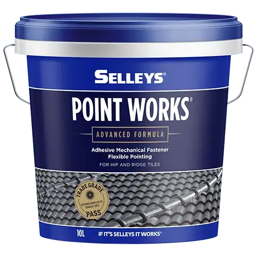 Selleys Point Works is a tile pointing compound applied with a trowel and used to fasten (point) hip and ridge roof tiles.